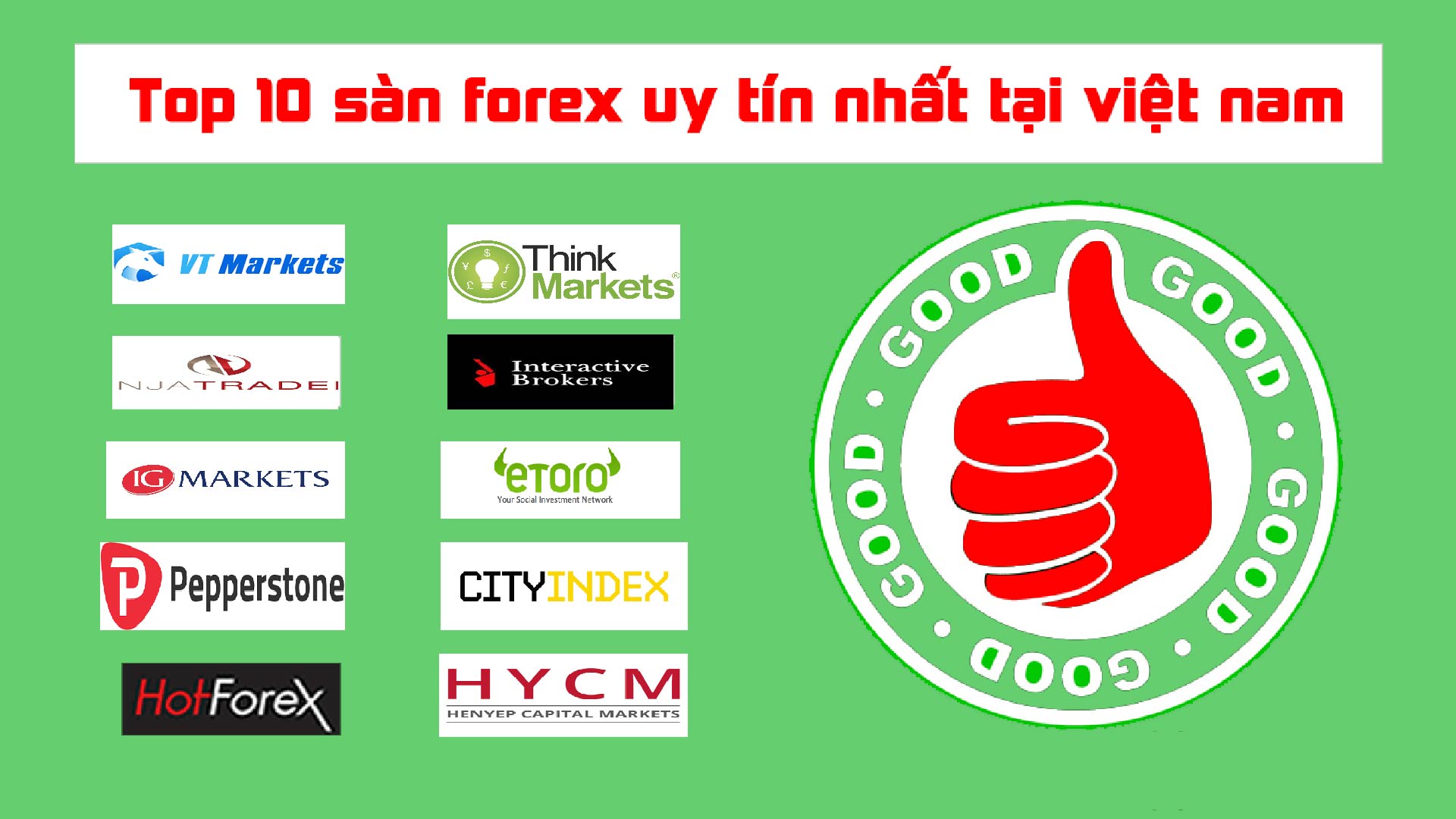 Trên đây là top danh sách các sàn Forex uy tín nhất thế giới hiện nay với đầy đủ các chứng chỉ cũng như các tiêu chí đánh giá sàn uy tín . Các nhà đâu tư có thể trải nghiệm các sàn broker chúng tôi đề xuất theo thứ tự từ trên xuống dưới để đánh giá cho riêng mình bằng các tài khoản demo mà các sàn cung cấp.